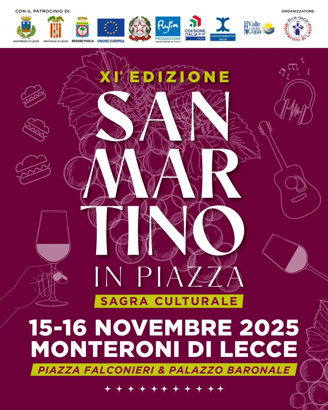 San Martino: Tradizione, Cultura e Vino Novello a Monteroni di Lecce “La nebbia agli irti colli, piovigginando sale…” – con queste parole, Giosuè Carducci ci trasporta nell’atmosfera tipica di San Martino, una festa che da secoli segna l’arrivo dell’autunno e celebra l’abbondanza della natura e il calore della comunità. San Martino è una ricorrenza che va oltre la semplice tradizione religiosa: è un momento di convivialità e di scoperta delle radici storiche e culturali del nostro territorio, ed è soprattutto una festa che unisce le persone nel nome del buon vino, del cibo genuino e della cultura popolare.